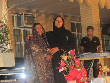 ۹-چه نیکوست حرمت پیشکسوت ومعلم را نگداشتن:خانم عالم جنیدی ازاین فرصت استفاده کرد وبا درآغوش کشیدن معلم سالهای دهه ۱۳۴۰ شمسی خود(خانم فاطمه نظری وعضو هیات امنای دانشگاه آزاد اوز)مراتب قدردانی را تقدیمش نمود.